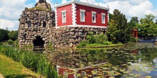 アウグストゥスブルク城とシュロス庭園を抜けた後、ファルケンルスター・アレーという並木道を約1km行った所にある、タカ狩りのために1740年に建てられた小さな宮殿。タカ狩りをはじめ狩猟が大好きだったアウグスト大司教が、狩りの時に使った別邸です。